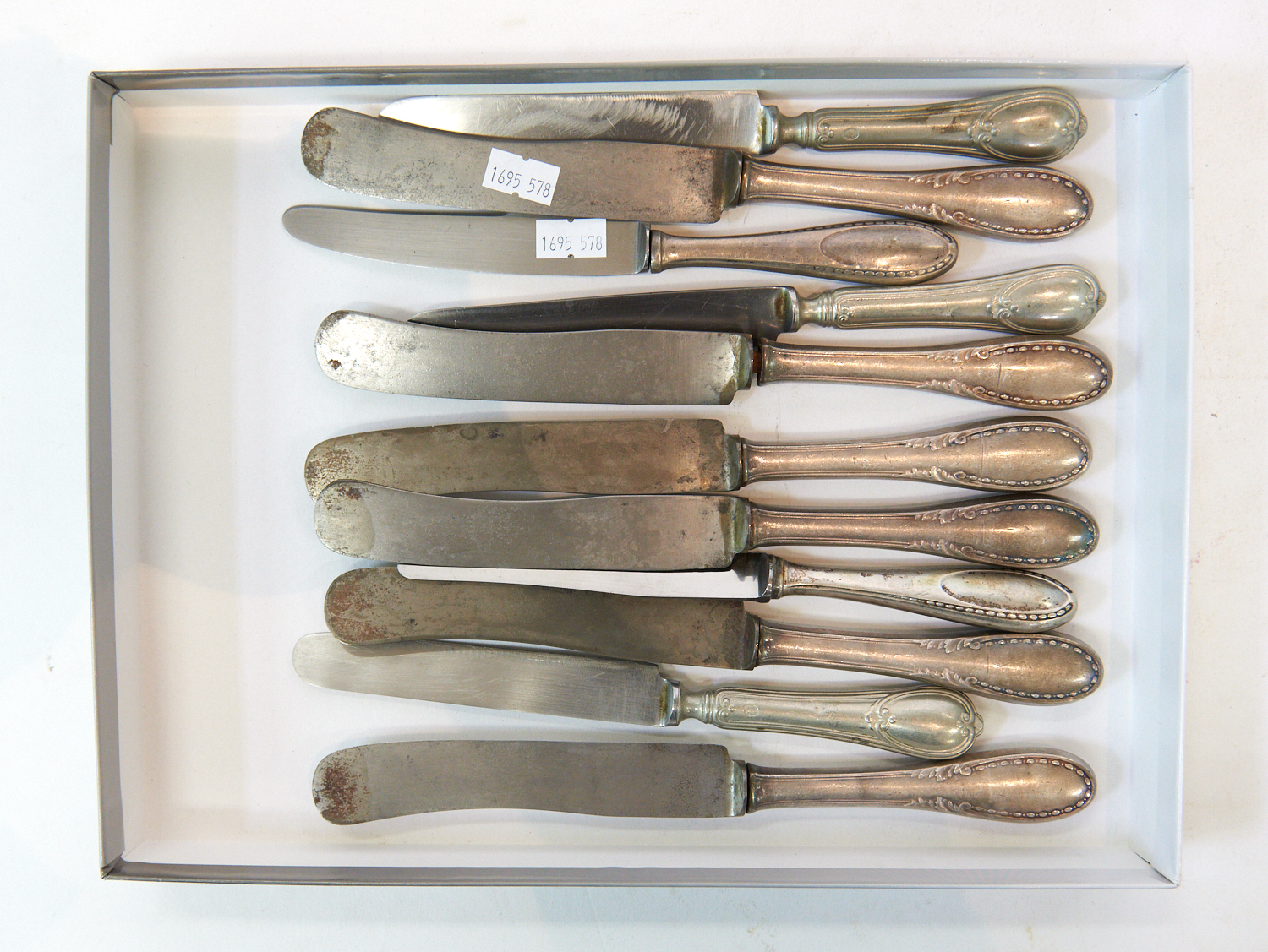 A GROUP OF EUROPEAN SILVER HANDLED KNIVES (UNTESTED), LEONARD JOEL LOCAL DELIVERY SIZE: SMALL. The Estate of Rodney Permezel