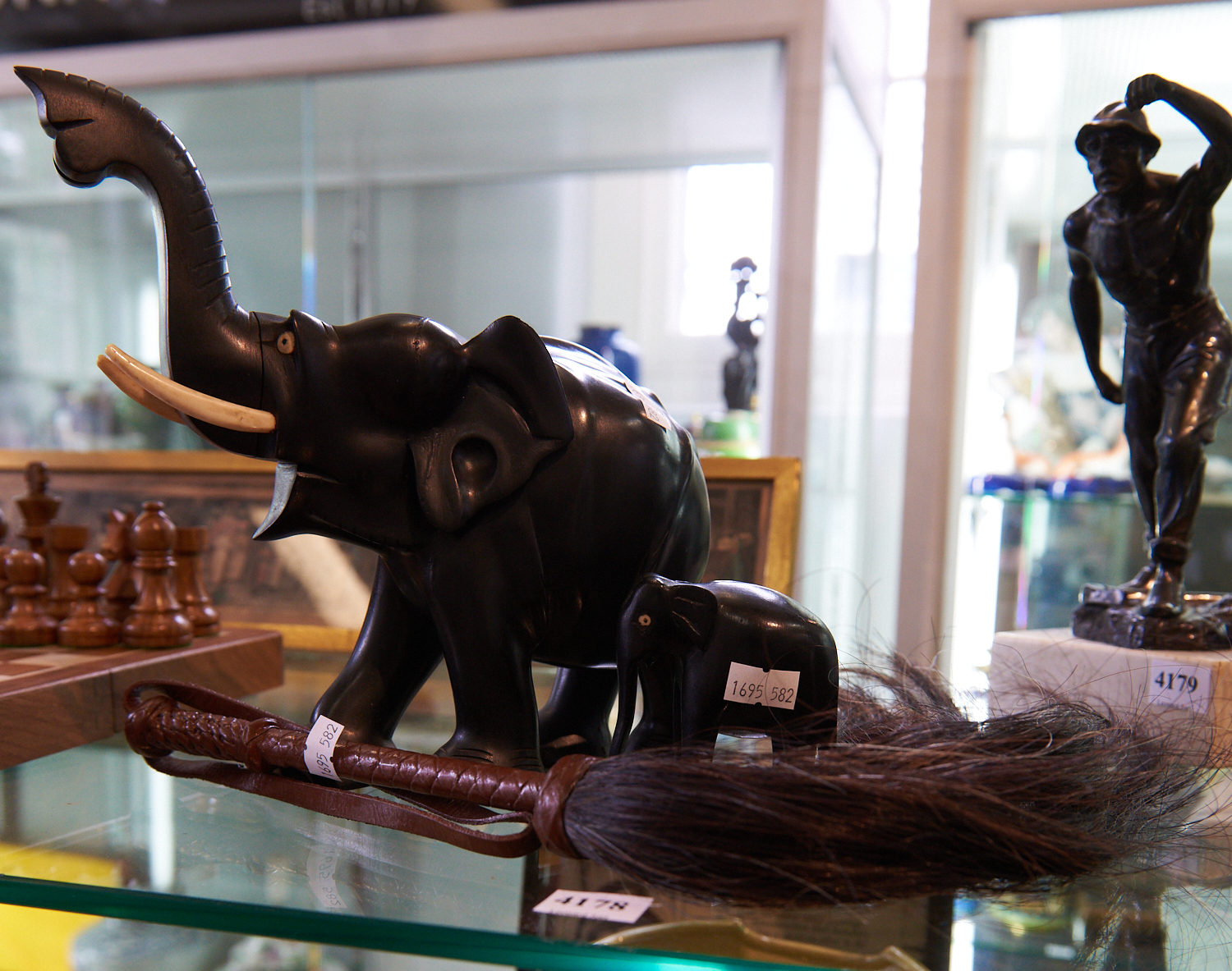 EBONY ELEPHANTS TOGETHER WITH FLY WHISK, LEONARD JOEL LOCAL DELIVERY SIZE: SMALL. The Estate of Rodney Permezel