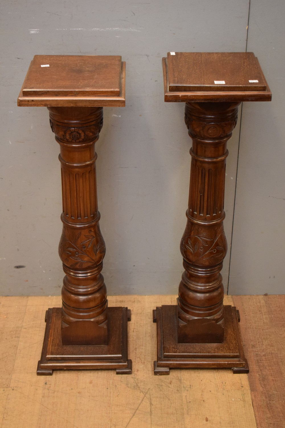 A PAIR OF ORNATELY CARVED TIMBER PEDASTALS (96H x 31W x 31D CM) (LEONARD JOEL DELIVERY SIZE: LARGE)
