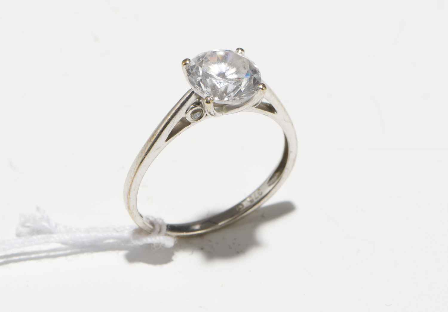 A SOLITAIRE COGNAC DIAMOND RING BY CARTMER-The emerald cut diamond weighing 4.0cts, in a four claw setting, signed, in 18ct rose gol...