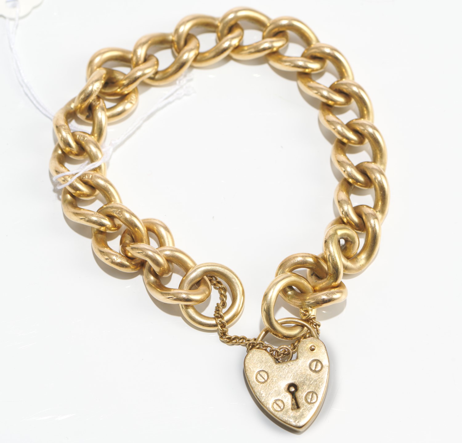 A CURBLINK PADLOCK BRACELET IN 9CT GOLD, 83.1GMS, 20 CM