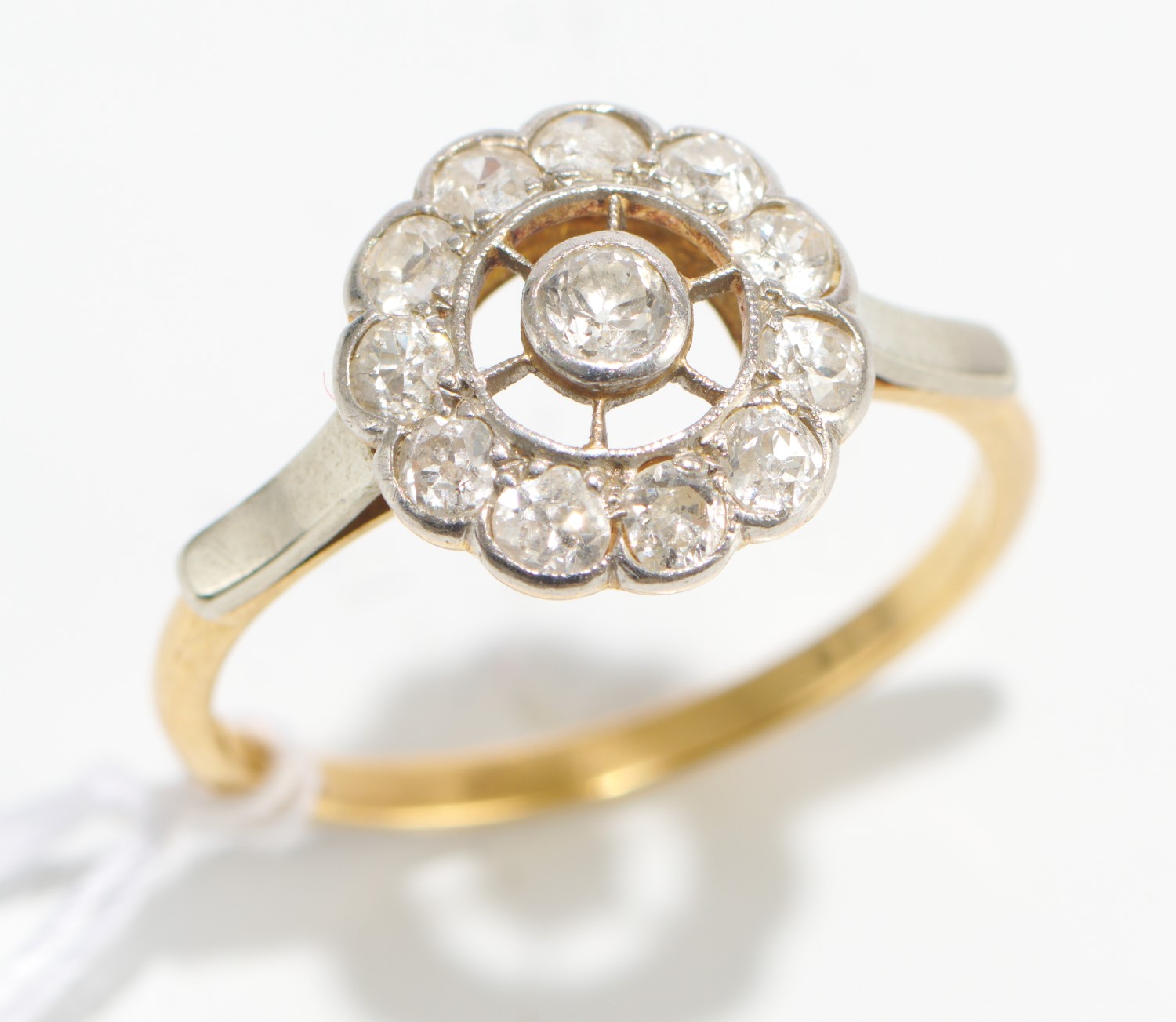 A DIAMOND DRESS RING IN 18CT GOLD AND PLATINUM, RING SIZE S-T, 3.7GMS