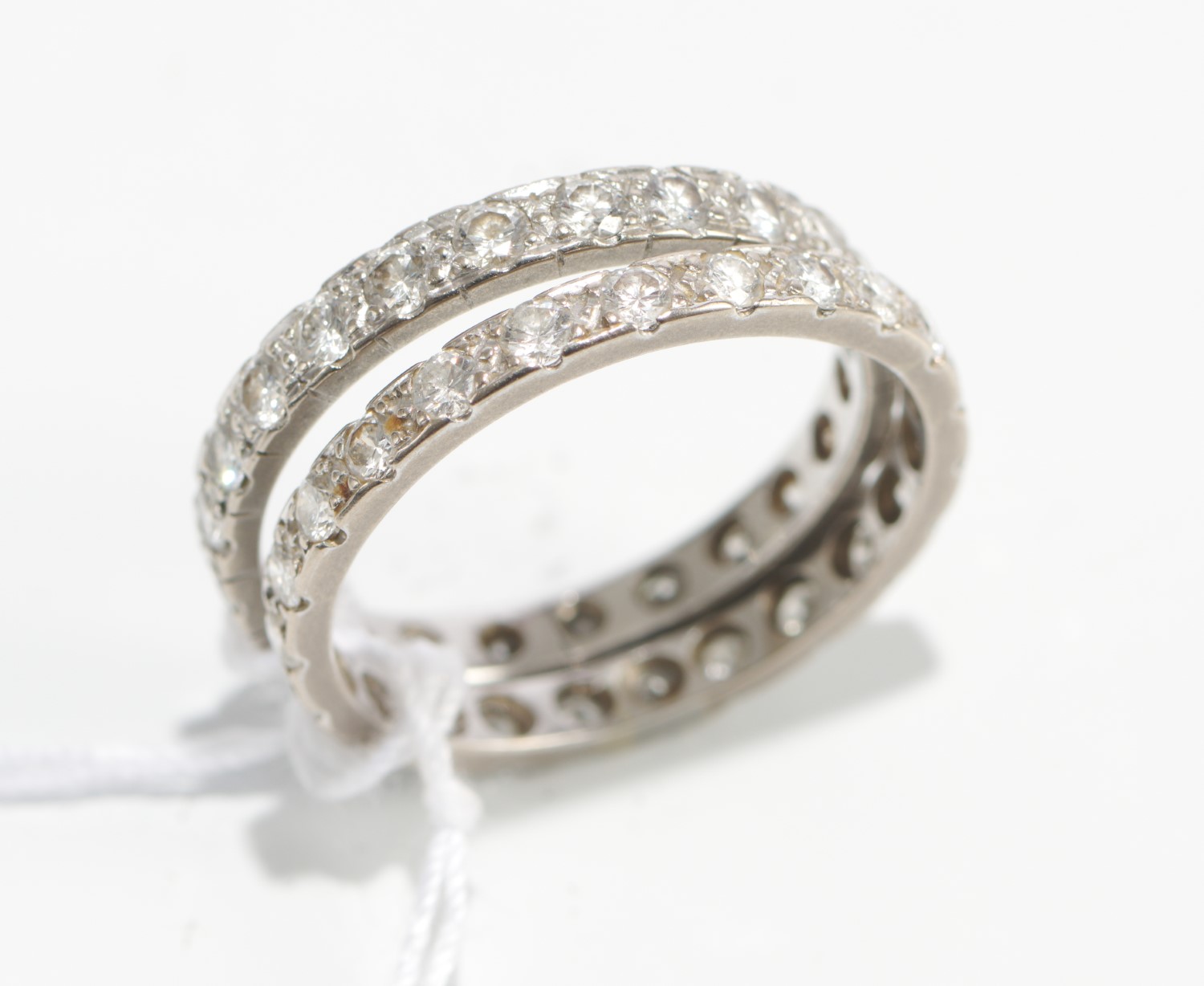 A PAIR OF DIAMOND ETERNITY RINGS IN 18CT WHITE GOLD, EACH SET WITH TWENTY FOUR ROUND BRILLIANT CUT DIAMONDS, RING SIZE T