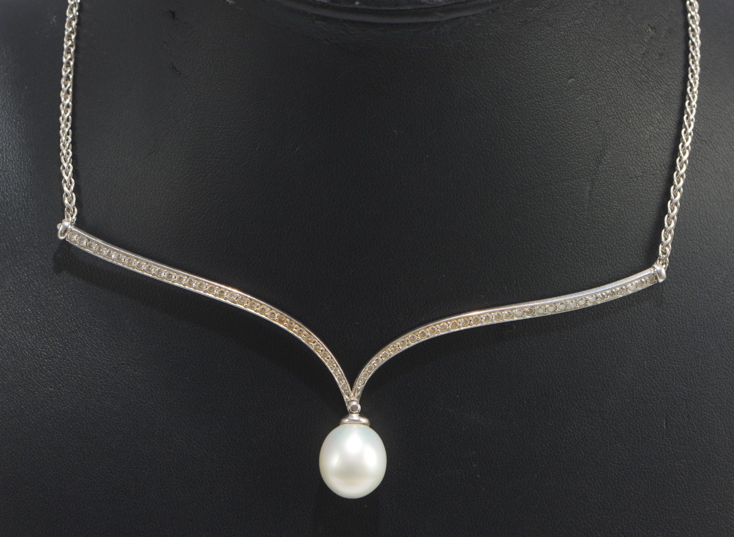 A SOUTH SEA PEARL AND DIAMOND NECKLACE IN 18CT WHITE GOLD