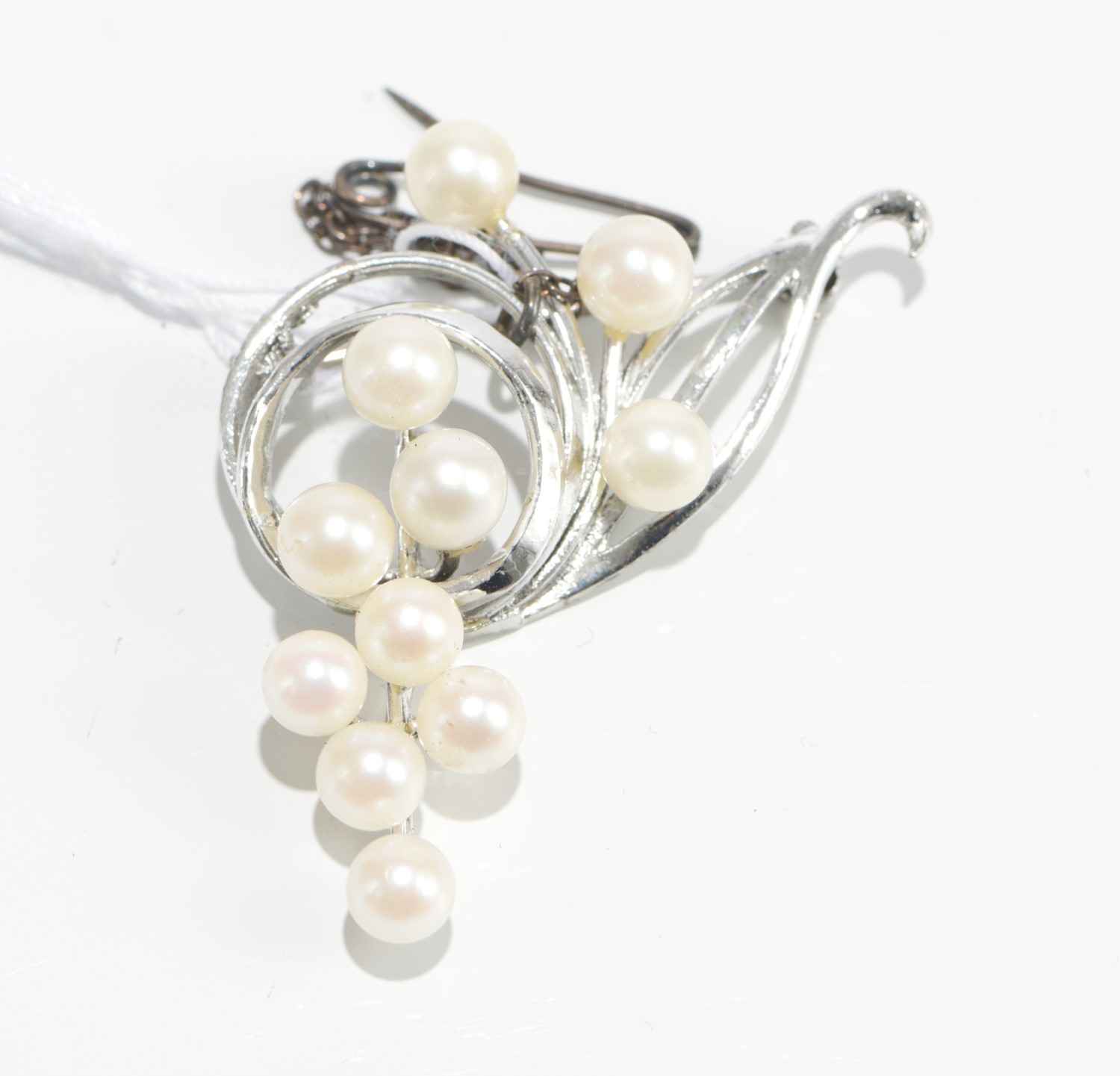 A CULTURED PEARL BROOCH IN STERLING SILVER