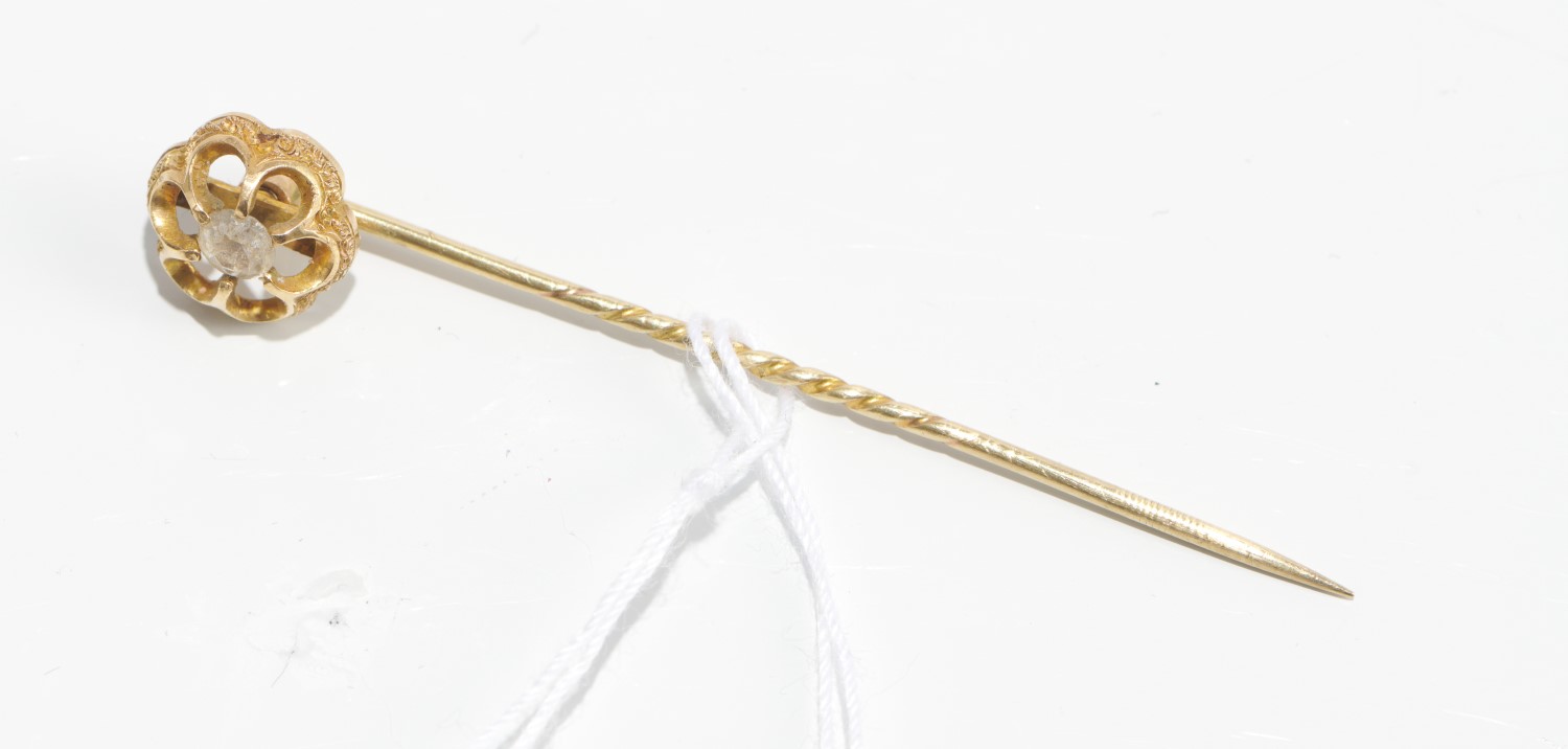 A PASTE SET STICK PIN, IN 9CT GOLD