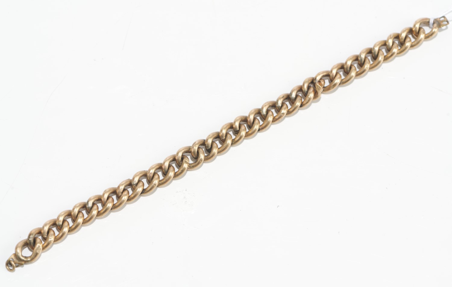 A CURB LINK BRACELET IN 9CT GOLD, 23.8GMS, A/F (BROKEN CLASP)