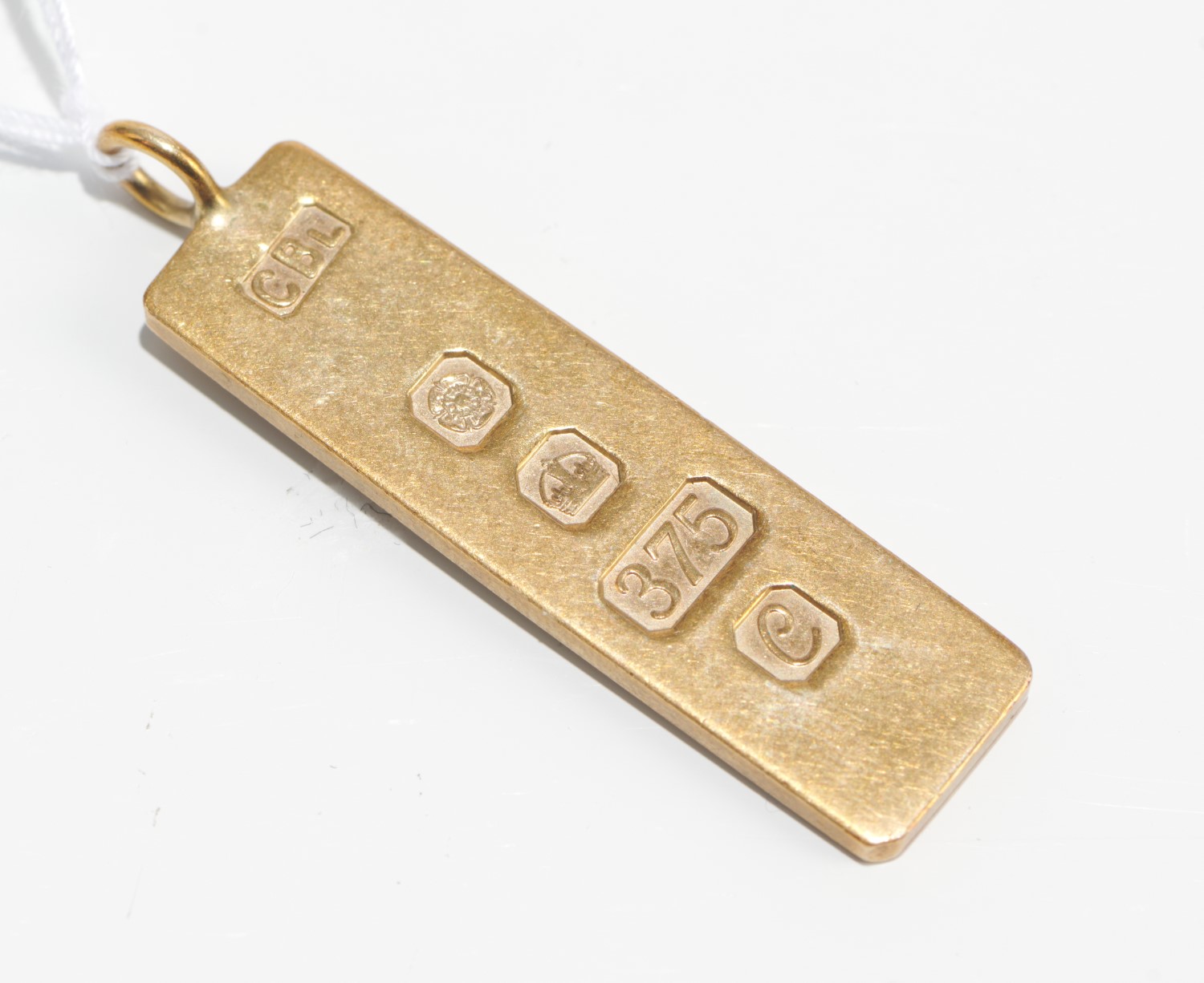 AN INGOT PENDANT IN 9CT GOLD, ENGLISH HALLMARKS, 14.1GMS