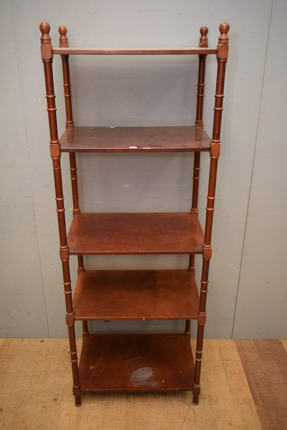 A TIMBER FIVE TIER SHELVING UNIT ( A/F ) ( 170H X 62W X 41D CM) (LEONARD JOEL DELIVERY SIZE: LARGE). The Estate of Rodney Permezel