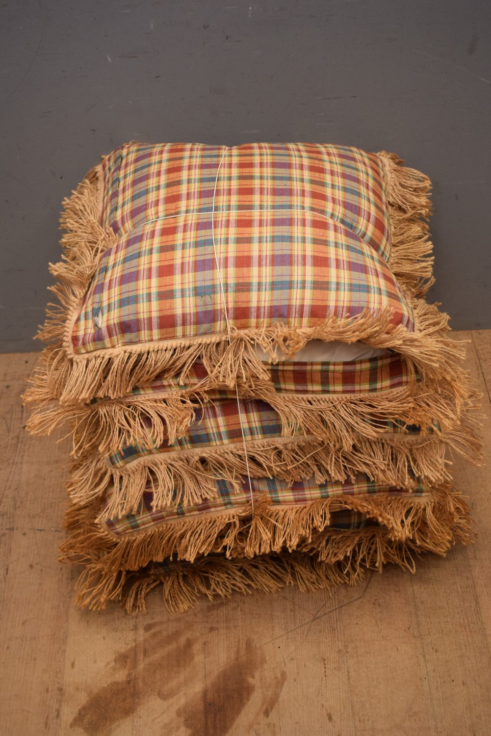 A COLLECTION OF SIX CUSHIONS (A/F) (LEONARD JOEL DELIVERY SIZE: LARGE). The Estate of Rodney Permezel