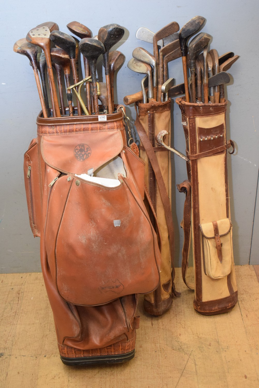 A COLLECTION OF VINTAGE GOLF CLUBS (A/F) (LEONARD JOEL DELIVERY SIZE: LARGE). The Estate of Rodney Permezel