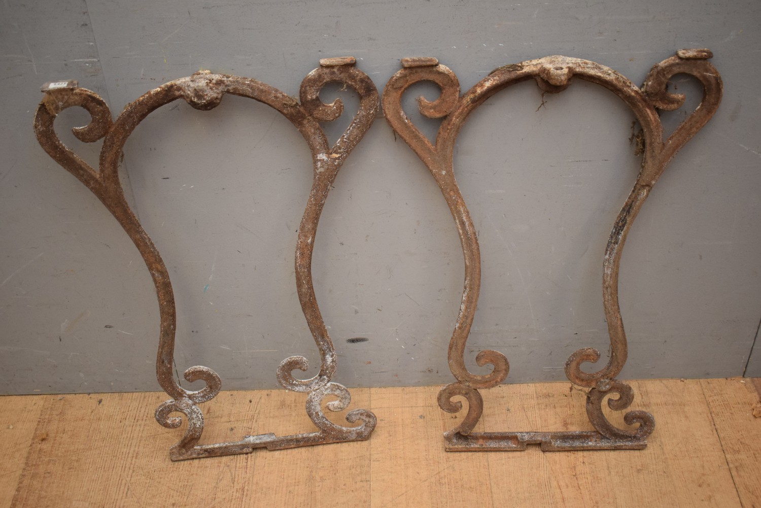 A PAIR OF CAST IRON TABLE ENDS (A/F) (75H X 52W CM) (LEONARD JOEL DELIVERY SIZE: LARGE). The Estate of Rodney Permezel