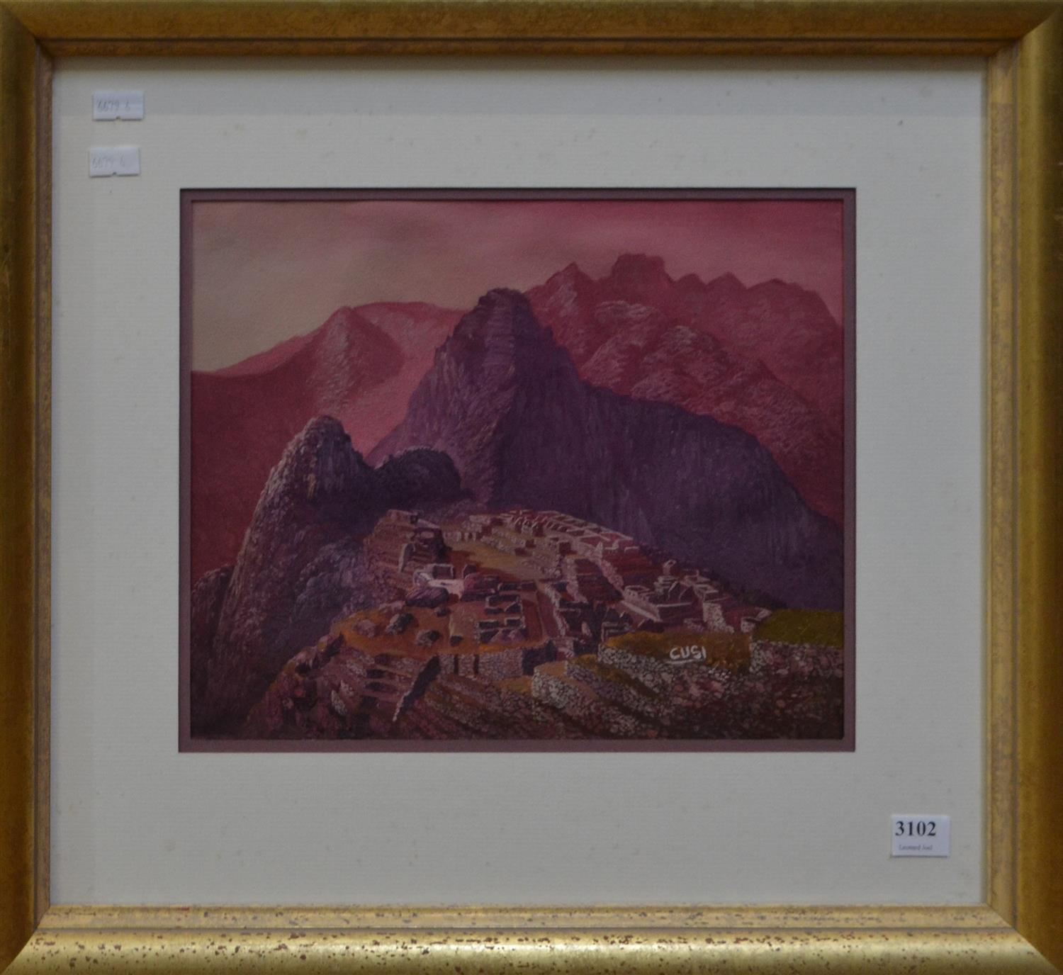 SIGNED CUSI, PURPLE LANDSCAPE, OIL ON CANVAS, 23 X 9CM, LEONARD JOEL DELIVERY SIZE: SMALL