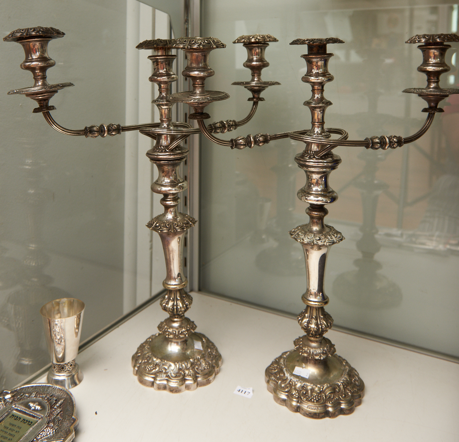A PAIR OF VICTORIAN SILVER PLATED CANDELABRA H.48CM, LEONARD JOEL LOCAL DELIVERY SIZE: SMALL