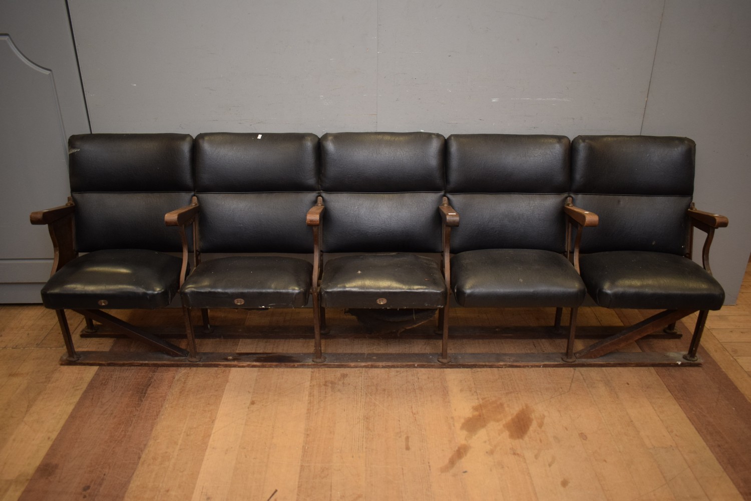 A SET OF FIVE VINTAGE CINEMA CHAIRS (83H x 254W x 56D CM) (PLEASE NOTE THIS HEAVY ITEM MUST BE REMOVED BY CARRIERS AT THE CUSTOMER'S EXPENSE. LEONARD JOEL STAFF CANNOT ASSIST CARRYING THIS ITEM) (X-LARGE ITEM)