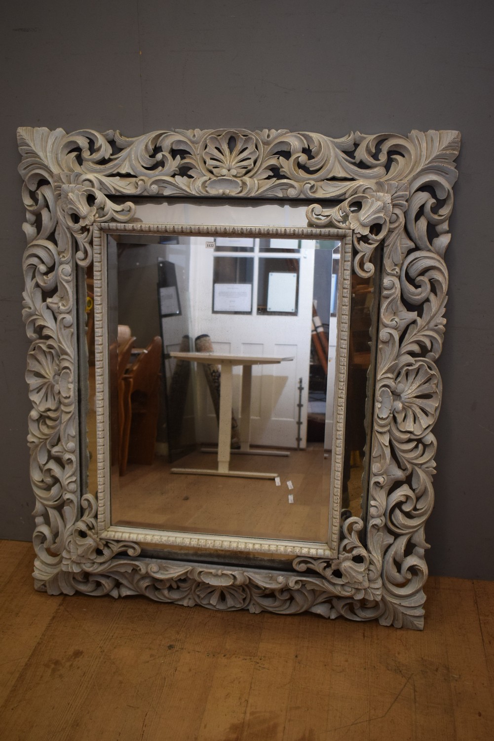A SUBSTANTIAL ORNATELY CARVED MIRROR (142H x 122W CM) (PLEASE NOTE THIS HEAVY ITEM MUST BE REMOVED BY CARRIERS AT THE CUSTOMER'S EXPENSE. LEONARD JOEL STAFF CANNOT ASSIST CARRYING THIS ITEM) (X-LARGE ITEM)