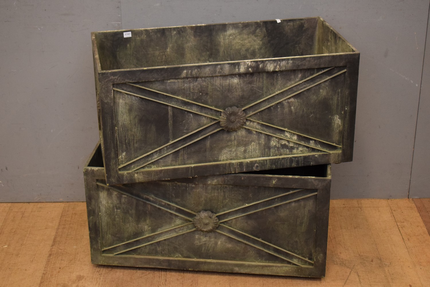 TWO LARGE METAL PLANTERS (H40 X W80 X D40 CM) (LEONARD JOEL DELIVERY SIZE: LARGE)