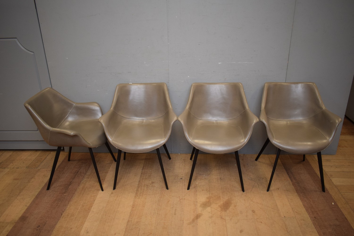 A SET OF FOUR CONTEMPORARY VINYL CHAIRS (H80 X W69 X D64 CM) (LEONARD JOEL DELIVERY SIZE: LARGE)