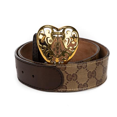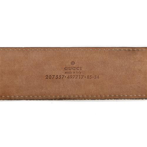 Styled in brown monogram coated canvas with gold metal buckle, marked size 85.