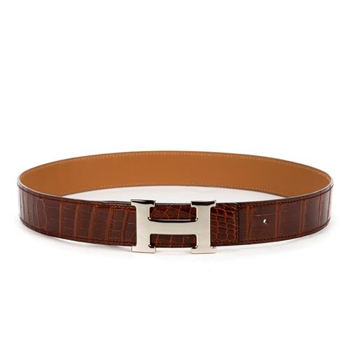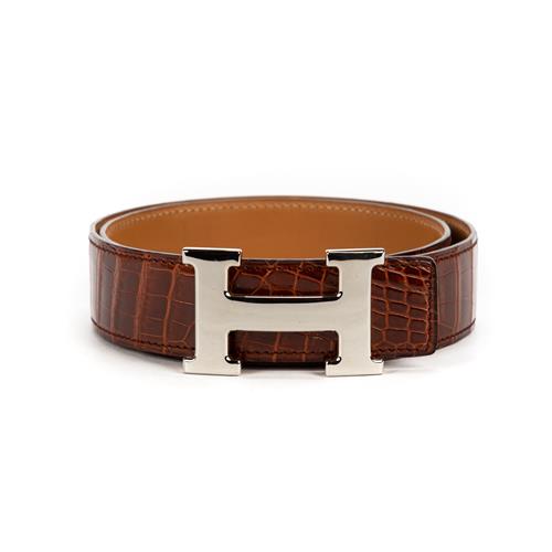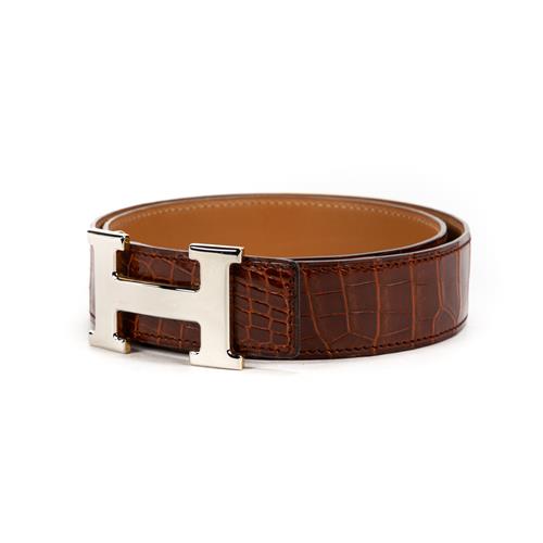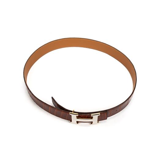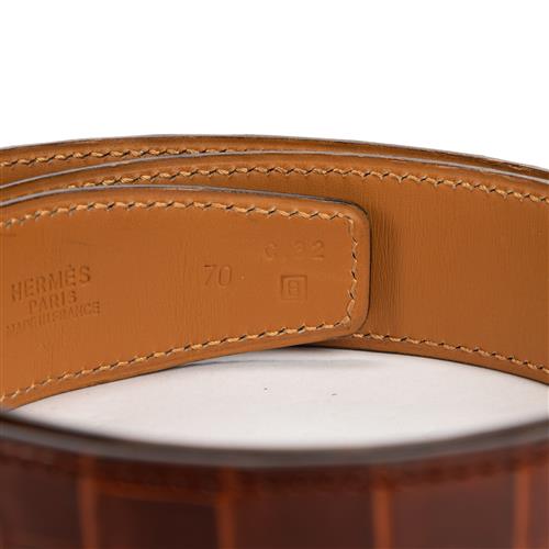 Styled in brown Crocodile leather and silver tone hardware, labelled size 70cm.