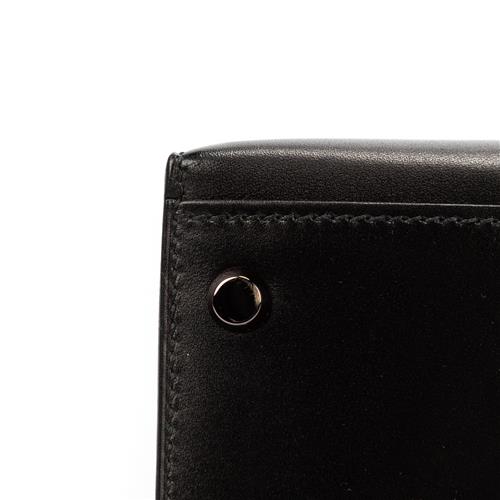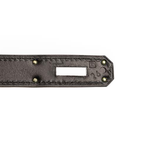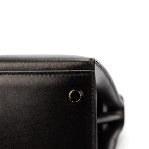 Styled in black box leather and ruthenium hardware, 32 x 23 x 10.5cm.