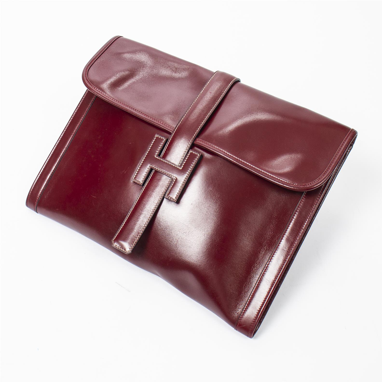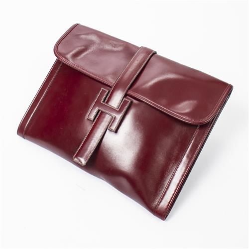 Styled in Rouge box leather 35 x 27 x 2.5cm.