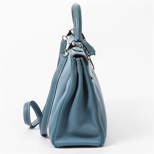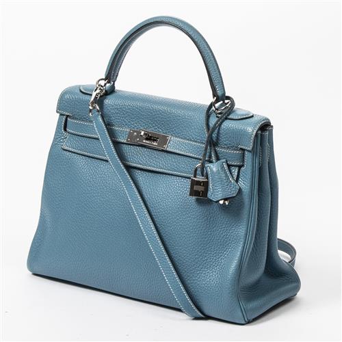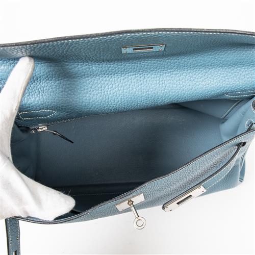 Styled in light blue Togo leather and silver tone hardware, 32 x 23 x 12.5cm.
