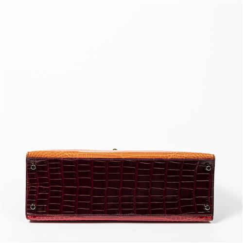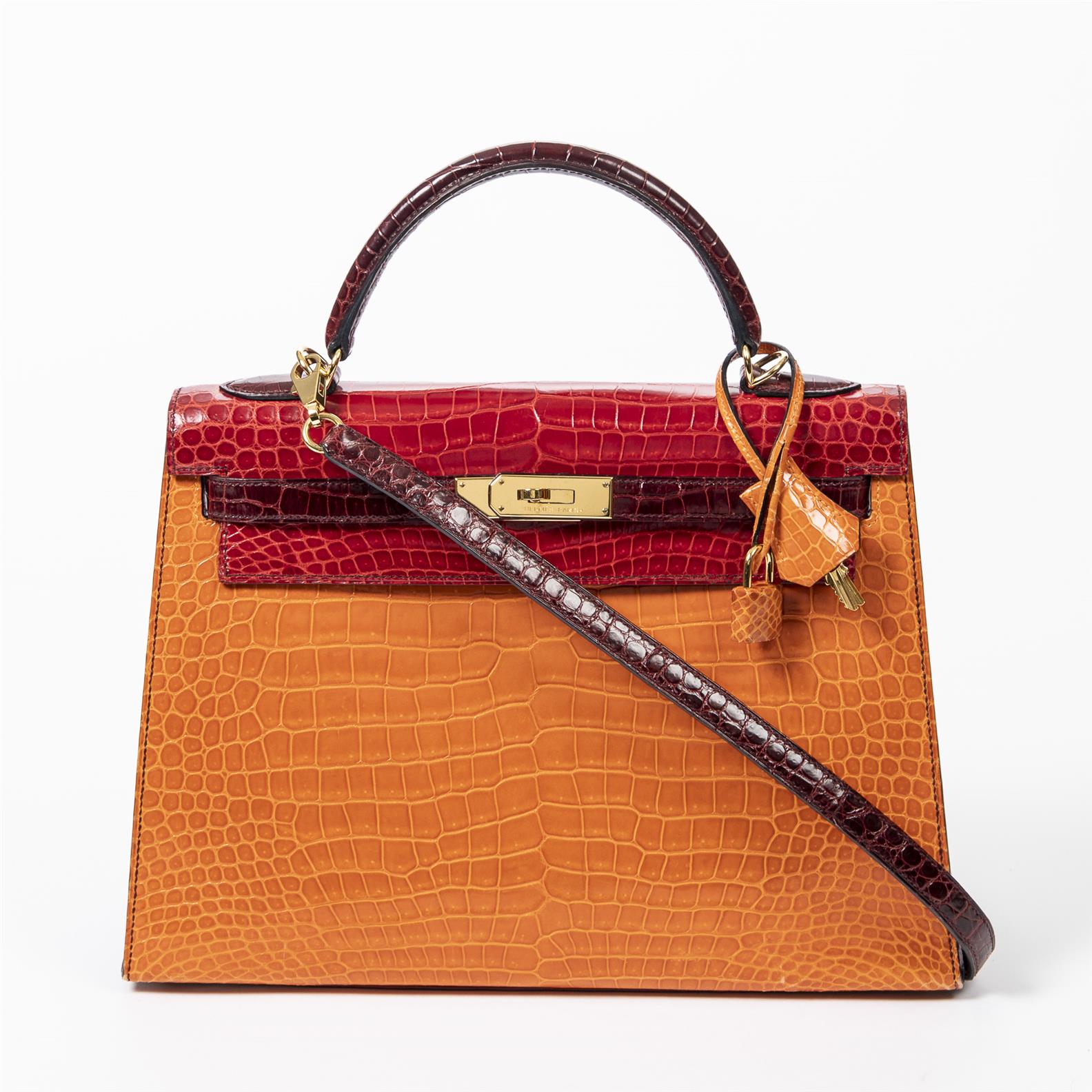 Styled in Orange, Rouge Vif and Rouge H Porosus Crocodile leather and gold tone metal hardware, 32 x 23 x 12cm.