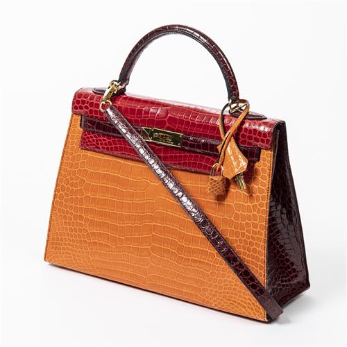 A CROCODILE KELLY HANDBAG BY HERMÈS