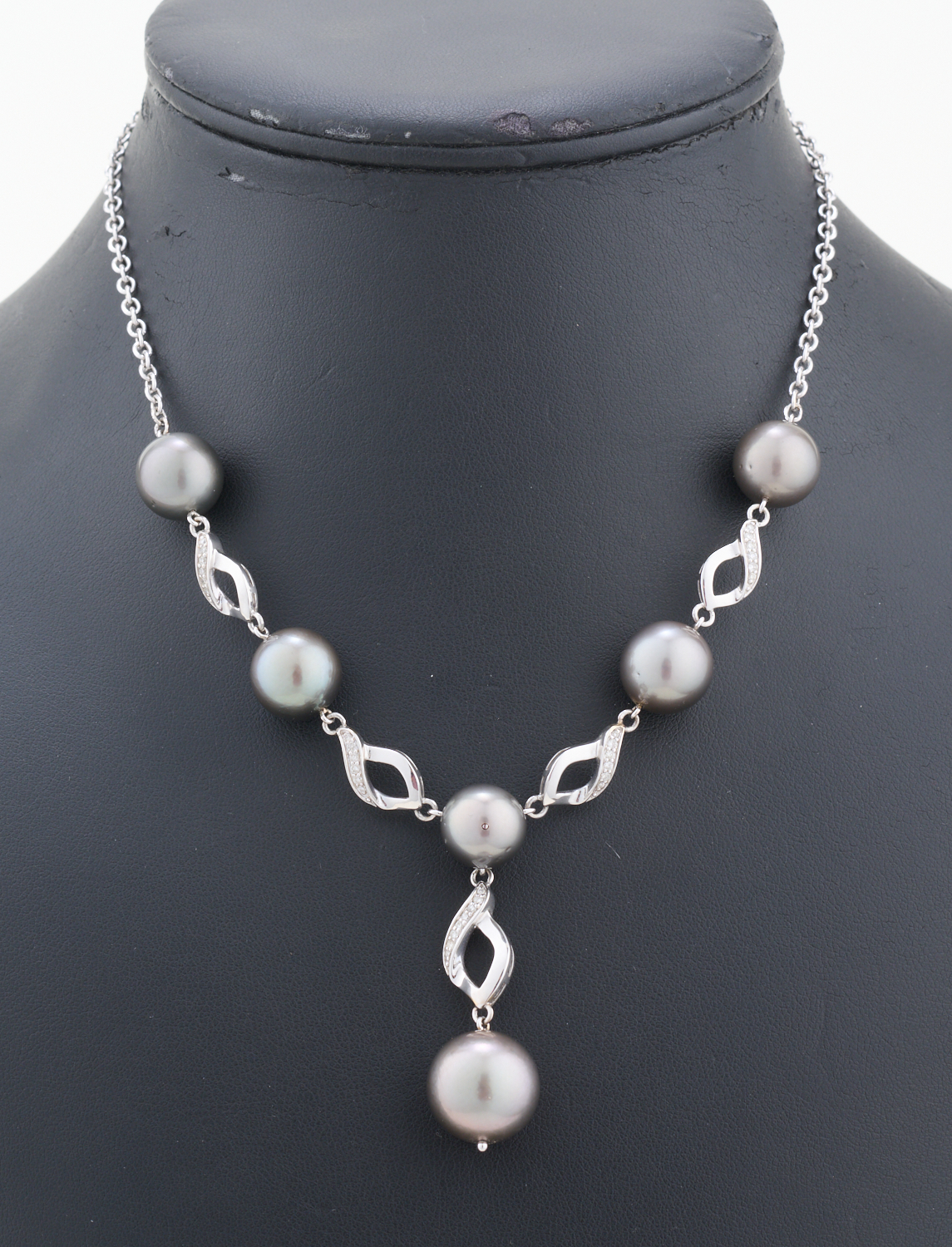 A TAHITIAN PEARL AND DIAMOND NECKLACE IN 18CT WHITE GOLD
