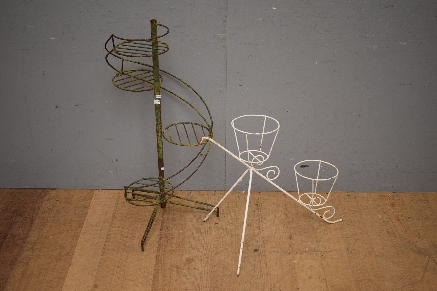 TWO 1940'S RETRO WIRE FORM POT PLANT STANDS (H87 X W47 CM) (LEONARD JOEL DELIVERY SIZE: MEDIUM)