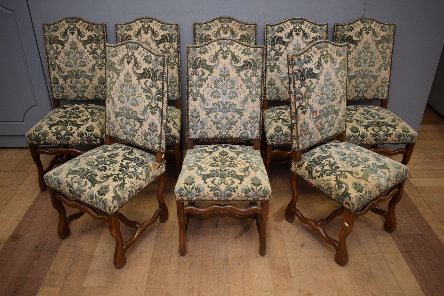 A SET OF EIGHT ANTIQUE TAPESTRY DINING CHAIRS (A/F) (107H x 49W x 59D CM) (PLEASE NOTE THIS HEAVY ITEM MUST BE REMOVED BY CARRIERS AT THE CUSTOMER'S EXPENSE. LEONARD JOEL STAFF CANNOT ASSIST CARRYING THIS ITEM) (X-LARGE ITEM)