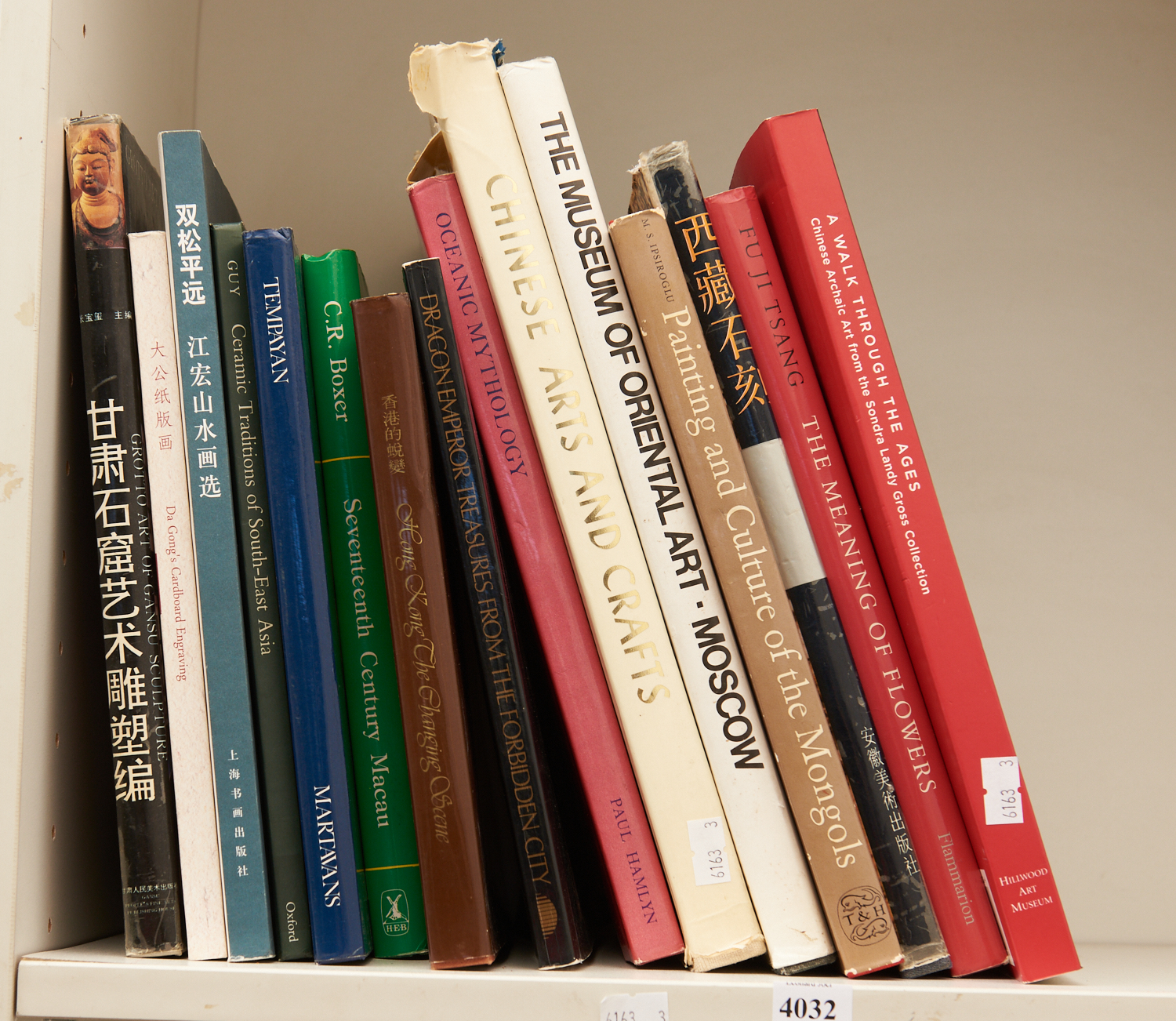 A SHELF OF BOOKS PERTAINING TO ASIAN ART, LEONARD JOEL LOCAL DELIVERY SIZE: SMALL