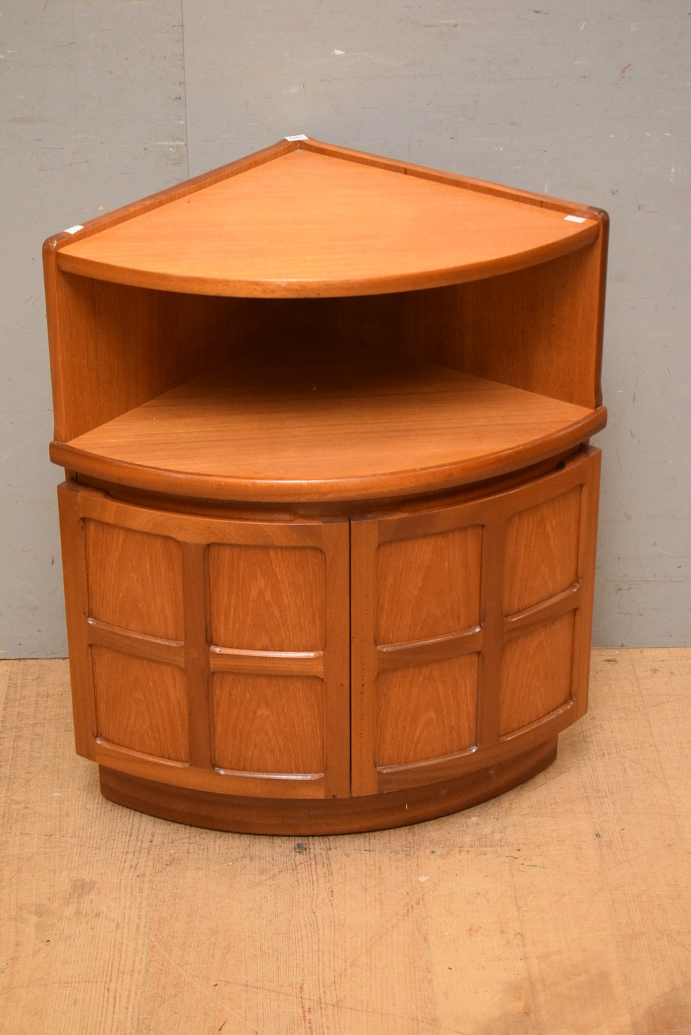 AN ENGLISH TEAK CORNER CREDENZA BY NATHAN (H75 X W62 X D45 CM) (LEONARD JOEL DELIVERY SIZE: LARGE)