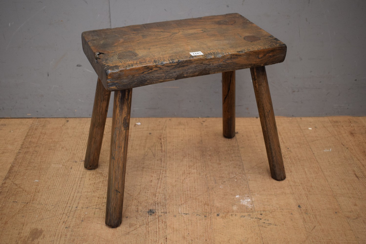 A FRENCH FARMHOUSE STYLE OAK MILKING STOOL (40H x 50W x 27D CM) (LEONARD JOEL DELIVERY SIZE: MEDIUM)