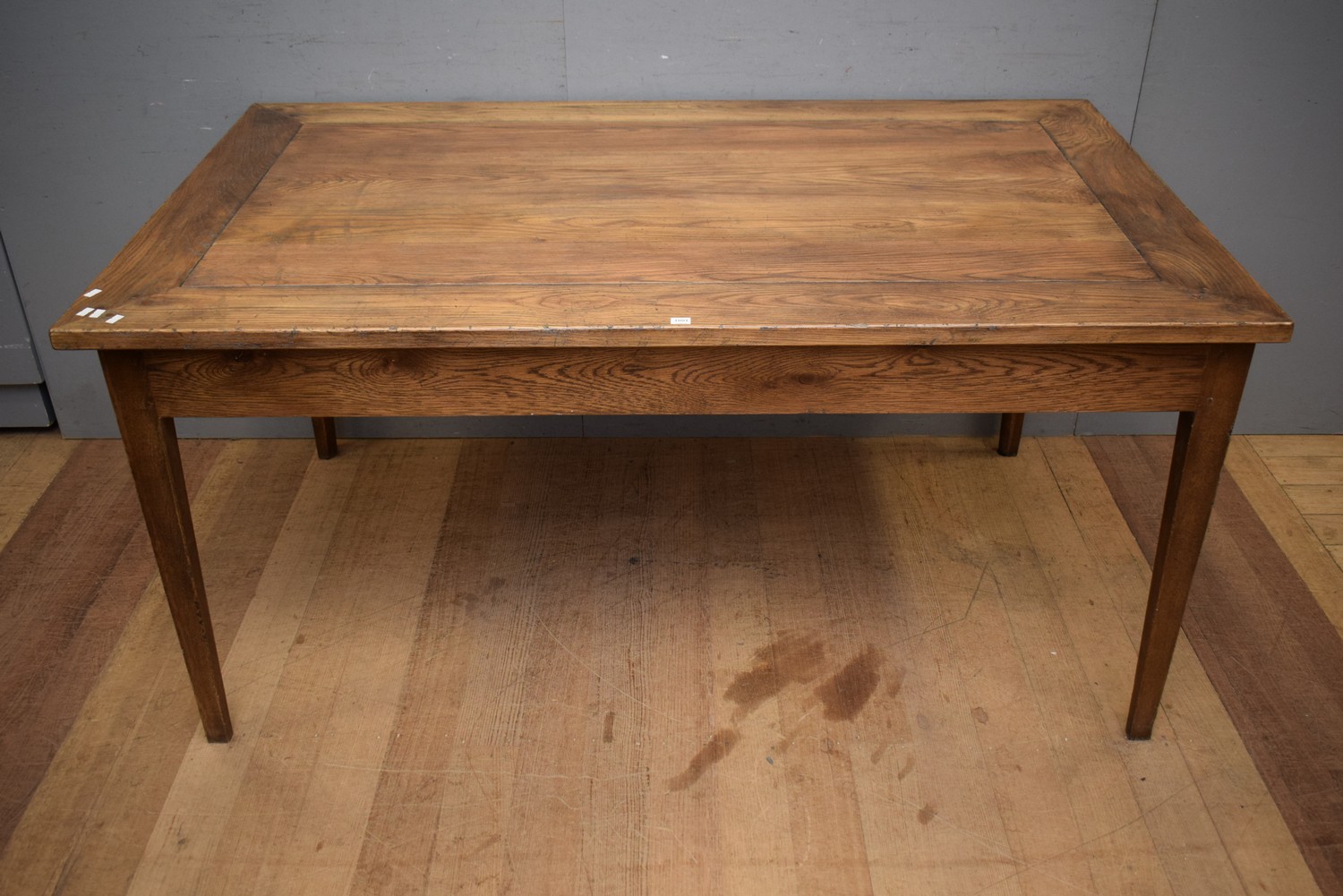 A SOLID OAK TABLE WITH TAPERED LEGS (78H x 160W x 95D CM) (PLEASE NOTE THIS HEAVY ITEM MUST BE REMOVED BY CARRIERS AT THE CUSTOMER'S EXPENSE. LEONARD JOEL STAFF CANNOT ASSIST CARRYING THIS ITEM) (X-LARGE ITEM)