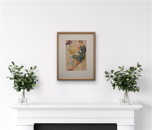 Work is in good condition, consistent with age. Some light creases are visible in the far edges and a minor hole in the upper left. Framed size 58 x 45.5cm.