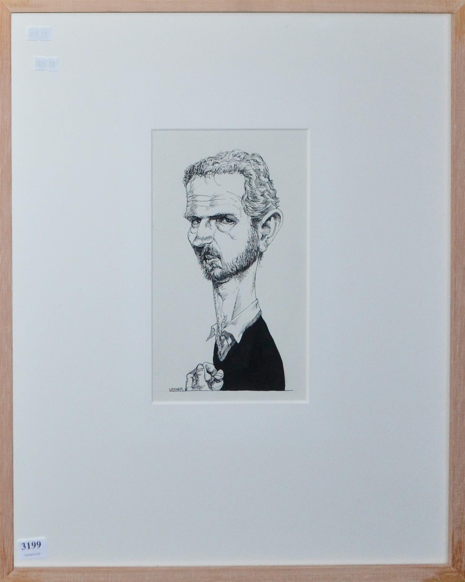 JOHN SPOONER, PORTRAIT, INK ON PAPER, 25 X 14CM, LEONARD JOEL DELIVERY SIZE: SMALL