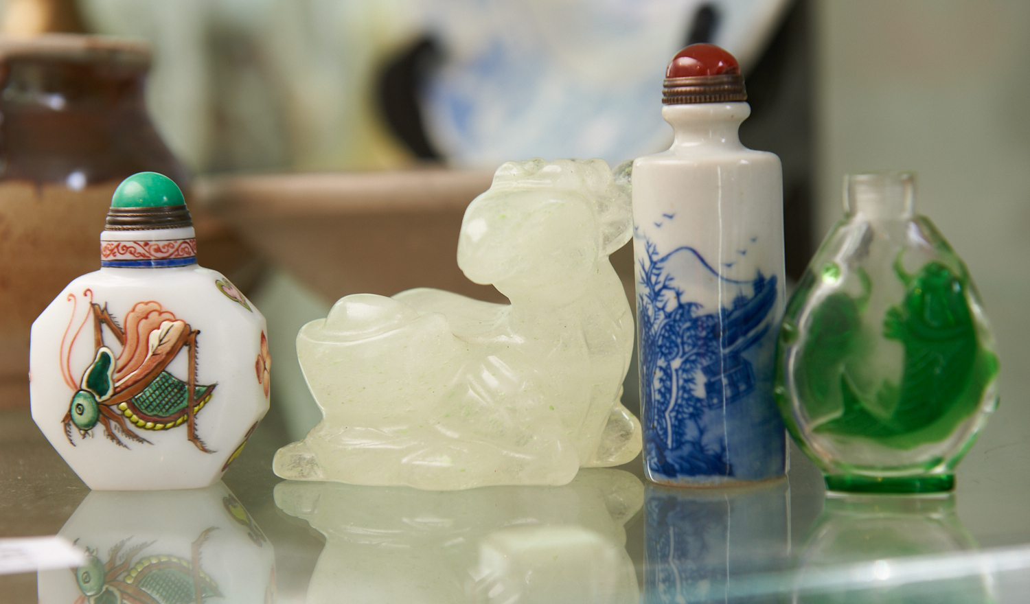 A GROUP OF CHINESE ITEMS INCLUDING PEKING GLASS SNUFF BOTTLE H.8.5CM, LEONARD JOEL LOCAL DELIVERY SIZE: SMALL