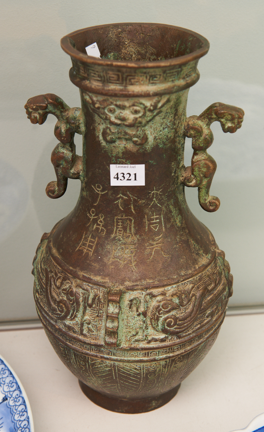 A CHINESE BRONZE VASE WITH ARCHAIC STYLE DECORATION H.32CM, LEONARD JOEL LOCAL DELIVERY SIZE: SMALL