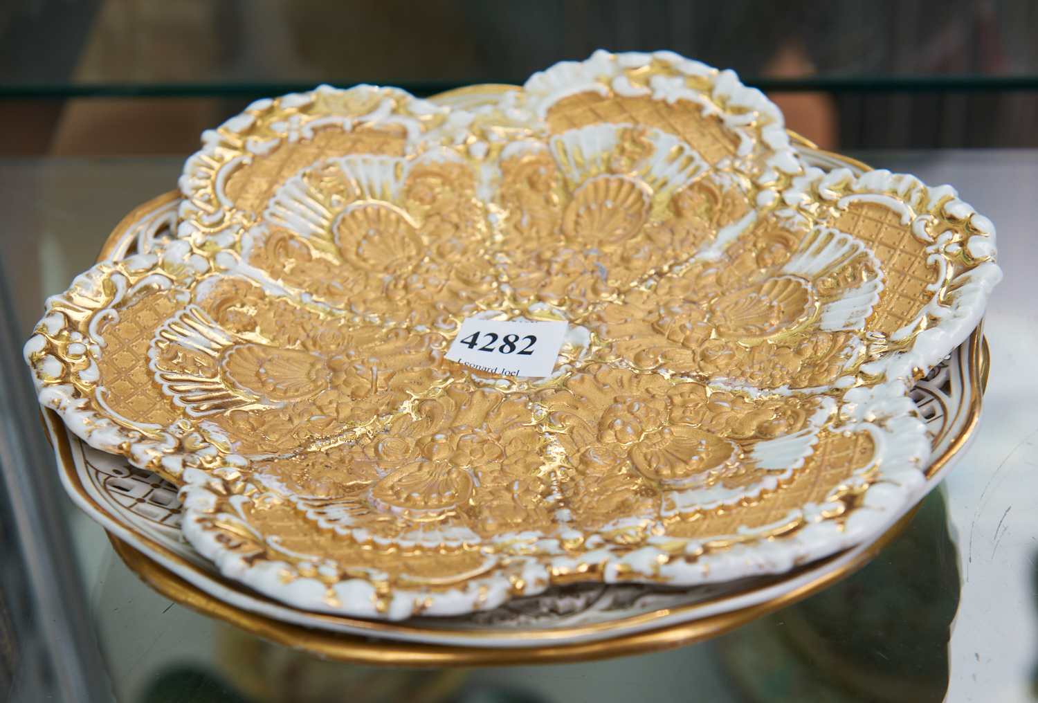 A GROUP OF THREE PLATES INCLUDING MEISSEN STYLE AND DRESDEN (20.5 CM D), LEONARD JOEL LOCAL DELIVERY SIZE: SMALL