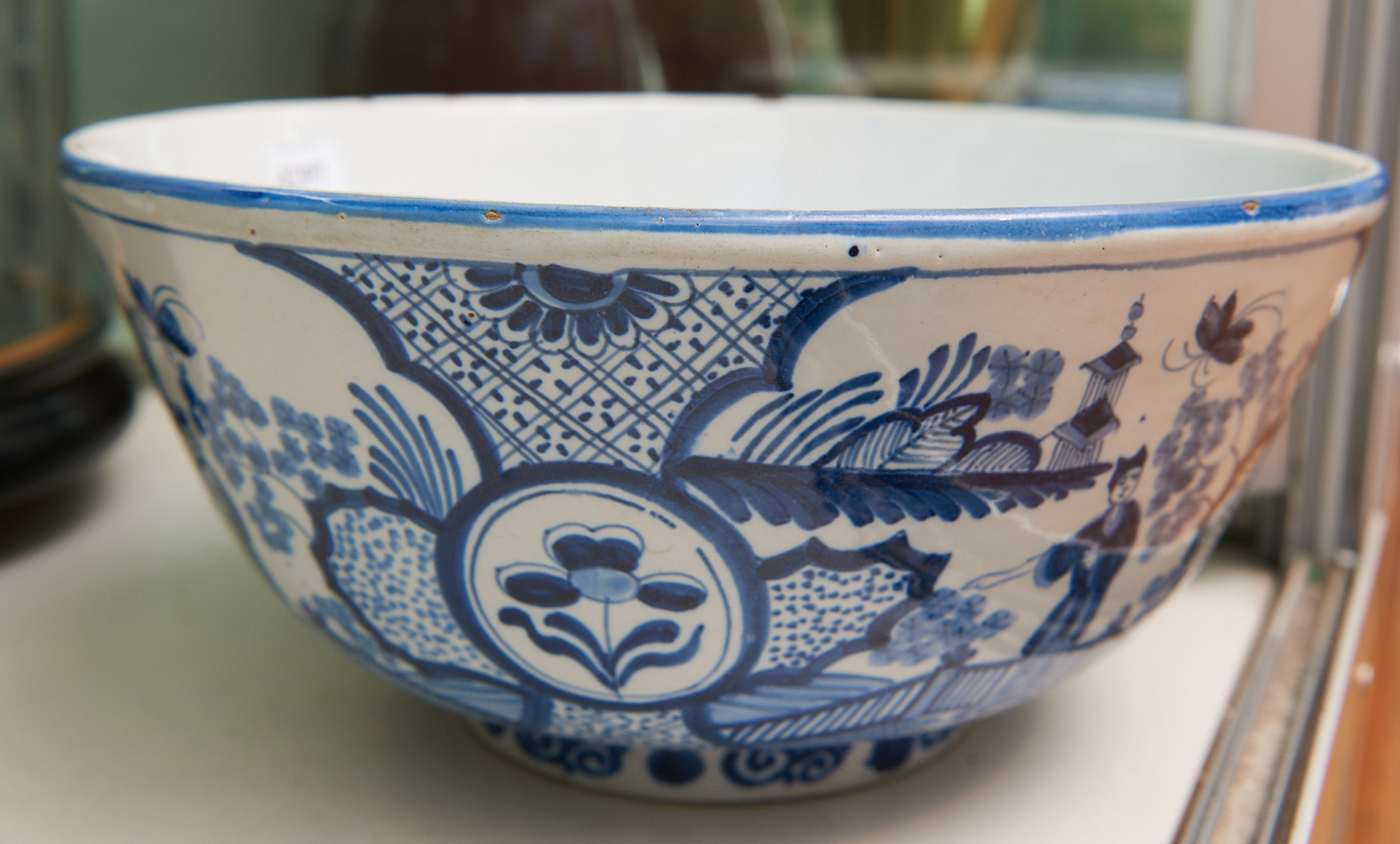 AN 18TH CENTURY DUTCH BLUE AND WHITE TIN GLAZE DELFT BOWL (27 CM D), LEONARD JOEL LOCAL DELIVERY SIZE: SMALL