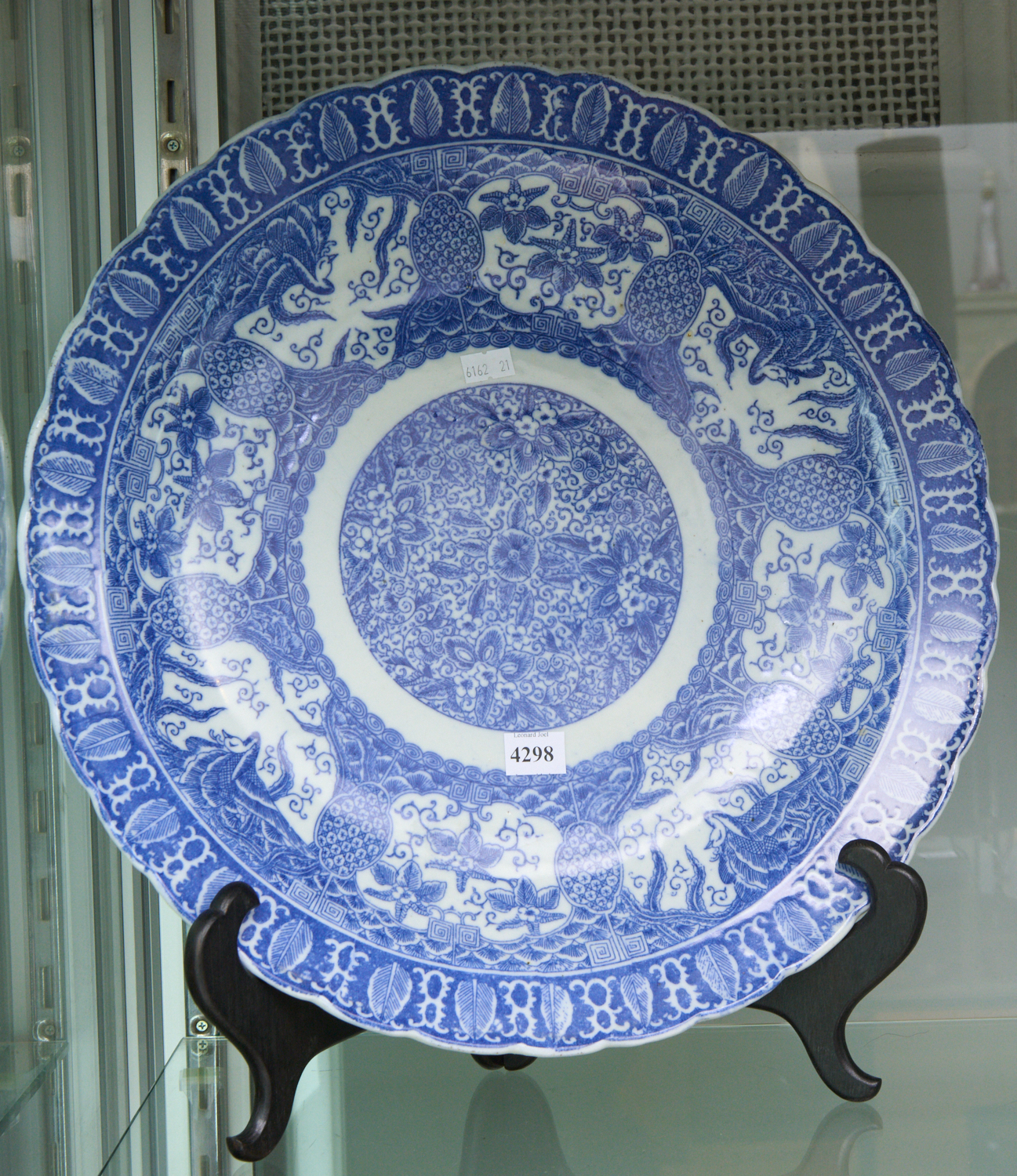 A JAPANESE BLUE & WHITE CHARGER WITH FLORAL MOTIF DIA.40CM, LEONARD JOEL LOCAL DELIVERY SIZE: SMALL