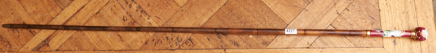 A 19TH CENTURY FRENCH SEVRES STYLE PORCELAIN AND GILT BRONZE MOUNTED CANE WALKING STICK (97.5 CM H), LEONARD JOEL LOCAL DELIVERY SIZE: SMALL