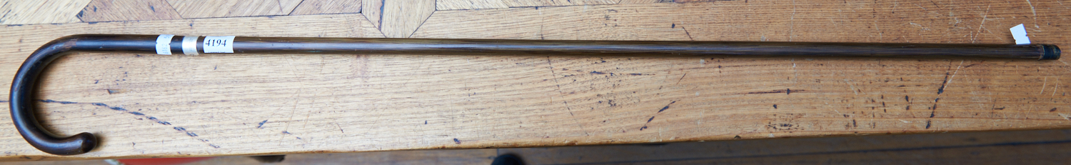 A STERLING SILVER COLLARED WALKING STICK (88.5 CM H), LEONARD JOEL LOCAL DELIVERY SIZE: SMALL