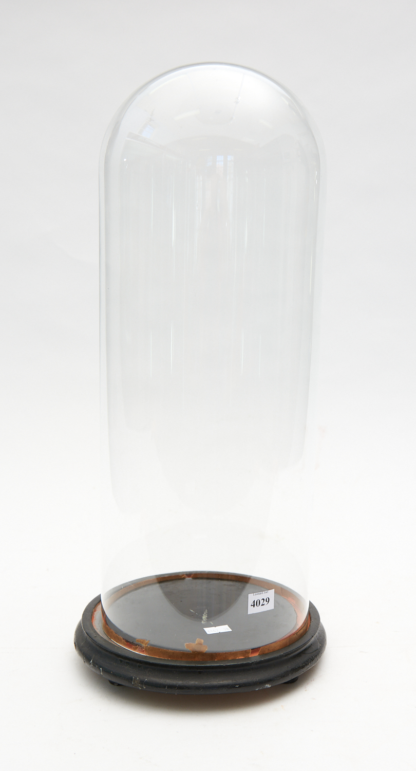19TH CENTURY FRENCH GLASS DOME WITH EBONISED WOODEN BASE, LEONARD JOEL LOCAL DELIVERY SIZE: SMALL