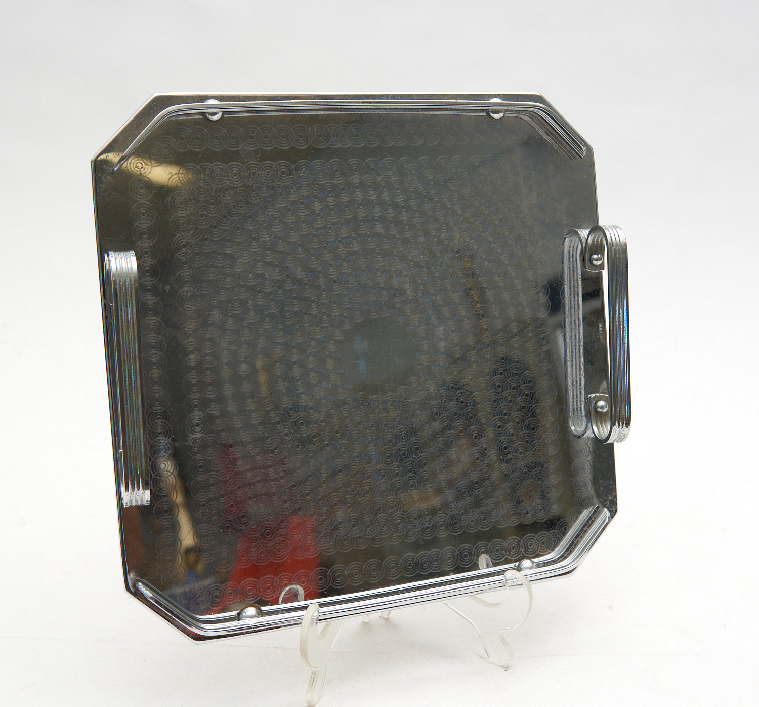 AN ART DECO TWO HANDLED SQUARE FORM TRAY W.29CM, LEONARD JOEL LOCAL DELIVERY SIZE: SMALL