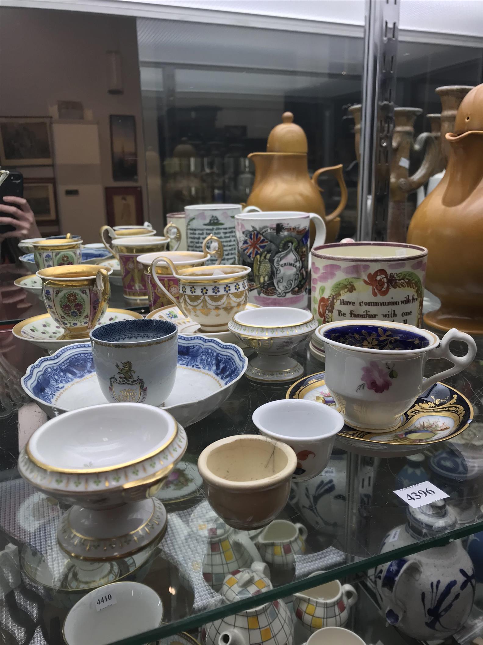A GROUP OF PORCELAIN INCLUDING PAIR OF SALT CELLARS (A/F TEACUPS AND COMMEMORATIVE MUGS), LEONARD JOEL LOCAL DELIVERY SIZE: SMALL The Estate of Rodney Permezel