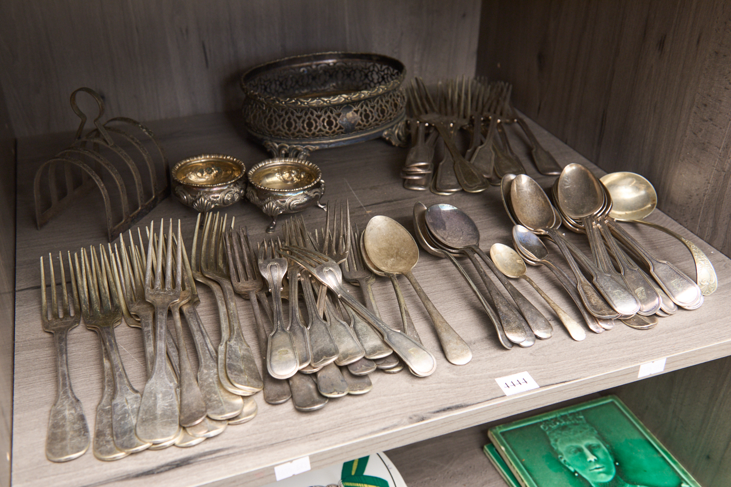 A SHELF OF ASSORTED SILVERPLATE FLATWARE, LEONARD JOEL LOCAL DELIVERY SIZE: SMALL The Estate of Rodney Permezel