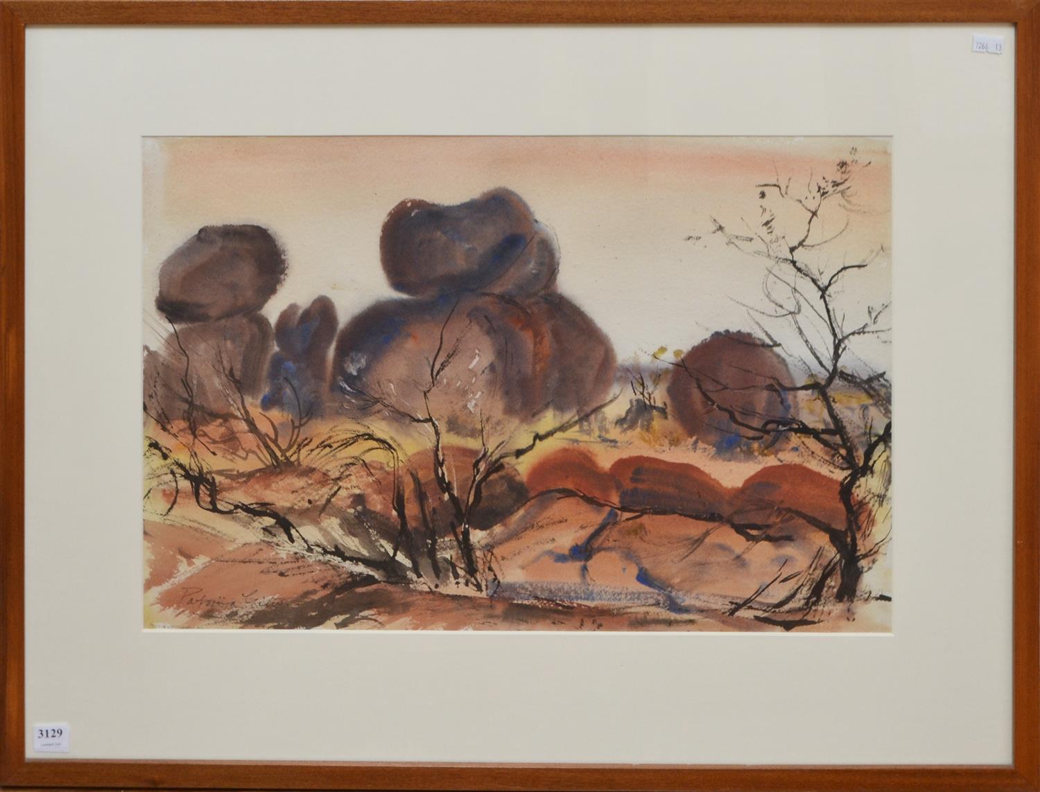 PATRICIA GILES, LANDSCAPE, INK ON PAPER, 36 X 54CM